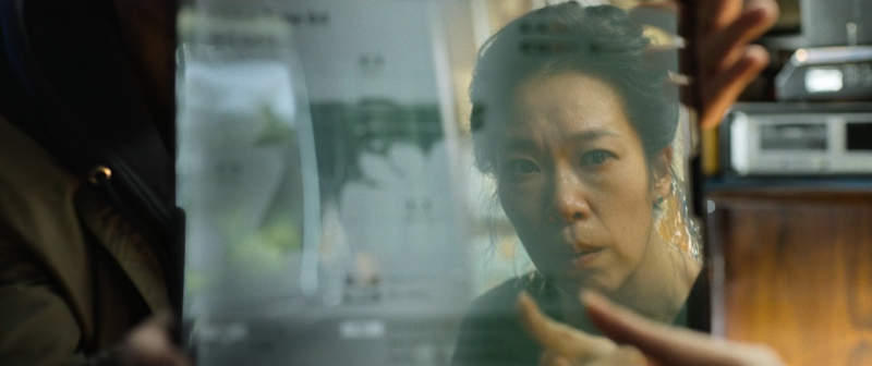 Parece como si Park Chan-wook tratase de exprimir al máximo el potencial de cada situación a través de su puesta en escena. En Decisión de partir funcionaba muy bien: ilustraba la alienación de los personajes con su trabajo, roles y el mundo digital mediante planos subjetivos de pantallas y cortes bruscos que desestabilizan la percepción geográfica y temporal de los personajes, en pos de un desentendimiento emocional y separación contextual. Si bien esa forma hiperactiva de filmar logra situaciones de una particularidad única, en La única opción genera subrayados innecesarios. Los diálogos son bastante directos de por sí y, cuando vienen acompañados de un fundido o un montaje asociativo, se dilata la superficie emocional de la película y surgen problemas de estructura: se le dedica mucho más tiempo a los elementos que hiperalegorizan el discurso1, en lugar de a otros más inmediatos, de los que solo se sugieren aspectos más interesantes que podrían haberse expandido —el primer candidato goza de un mayor desarrollo que el segundo, en parte porque allí se empieza a gestar la relación de Man-su con el acto de asesinar, pero genera un desbalance que deja al segundo hecho como algo más independiente y con un potencial afectivo aún mayor— .