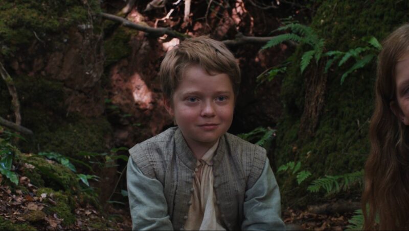 Una problemática que responde al mismo orden se ilustra en el aclamado fotograma que Roger Koza destacó negativamente en una publicación de X1. En una efusiva reunión del núcleo familiar en los bosques de Stratford, el pequeño Hamnet Shakespeare (Jacobi Jupe, extraordinario actor), con un atisbo de mueca que denota felicidad, se encuentra en el centro de un plano que, al igual que toda la película, cae en la neurótica obsesión de la simetría como una arbitrariedad irrevocable. Sobre la derecha del plano se ve una filtración extraña, molesta. Algo que no debería pertenecer a la armonía iconográfica que el film nunca pretende romper. Es un fragmento cortado de la cabeza de Judith, hermana del niño, amputado por el propio encuadre. De esa brusca inclusión se desprenden dos posibilidades: la primera es que sea una composición deliberada que atenta contra la ontología y ética del cine al decapitar a un personaje (¡una niña!) a través del dispositivo con un ímpetu despiadado. Si bien sospecho que no es así, no sería la primera vez Chloé Zhao coquetea con transgredir ciertos valores y principios: en Eternals, su anterior película, ella enajena la serenidad de su impronta a merced de un despropósito cinematográfico y, en la anterior, la aclamada Nomadland, romantiza la explotación laboral por parte de una empresa multinacional sin frenar por un segundo a reflexionar sobre la magnitud que tienen sus caprichos2. La segunda posibilidad es que haya sido simplemente un descuido, una falta de interés por mantener la afinación de su propio film.