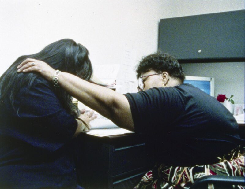El cine documental debería ir en contra de la información. Debería dejar ver cosas que no alcanzan las palabras para decirlas. Con Violencia doméstica plantea cómo mostrar la desgracia producida por el abuso sin caer en la revictimización o el regodeo. Una de las primeras escenas –la de la mujer a la que su pareja le corta la cara y la encuentran bañada de sangre– puede ser interpretada como innecesaria en términos de lo explícita que es visualmente. Pero Wiseman muestra lo que se tiene que mostrar y luego la película transcurre en su mayoría dentro del refugio, donde las experiencias son presentadas como relatos. Hay una línea muy delgada entre mostrar la violencia y no hacerlo. Quizás no mostrarla a veces equivale a ignorarla. Seguramente filmó varias situaciones similares, pero consideró que una era suficiente para ponerla en relación con lo que cuentan en el refugio. Las situaciones que se narran son igual de fuertes que la escena mencionada, pero traen consigo el paso del tiempo, el proceso que cada mujer o niño/a ha realizado, y cuentan con algo en el espectador u oyente presencial: la imaginación. Además, la manera en la que una persona relata lo que le ha sucedido nos dice algo sobre ella, quizás más que el hecho mismo. Esto mismo sucede en Welfare, donde el relato de la gente se cruza con la burocracia de las ayudas estatales y la falta de comunicación entre los distintos sectores, y pareciera que no alcanzan las experiencias contadas y los certificados médicos presentados para que estas personas puedan sobrevivir. Wiseman establece esos espacios para filmar y cuenta con el relato que hace la gente acerca de su propia historia de vida. No sigue a estas personas a la calle o a sus hogares. Cuenta con el testimonio, que tiene la fuerza de reproducir esas imágenes y de mostrar la manera en la que cada persona es afectada. La insistencia de Wiseman en estas situaciones demuestra que es un problema sistémico, igual que en varias otras de sus películas. No necesita usar una placa que lo diga con palabras.